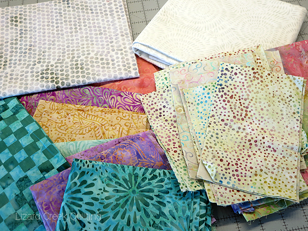 Squares, half square triangles, kite shape and side triangles all cut with the 10" AccuQuilt Mix & Match Qube and Angles Qube.